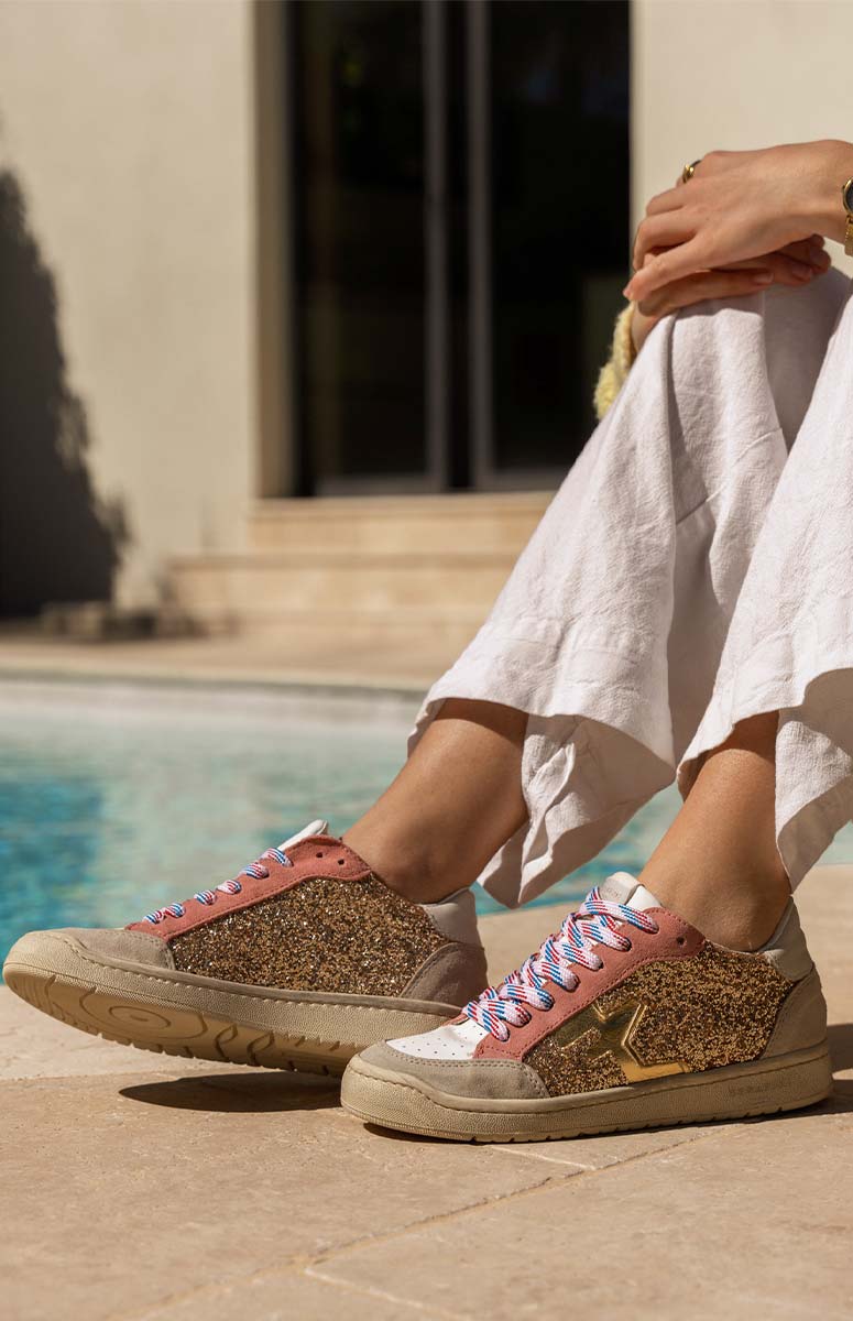 Profitez d’un moment de shopping détendu et serein, la livraison de la Basket A Paillettes San Diego Low Glitter Gold vous est offerte.