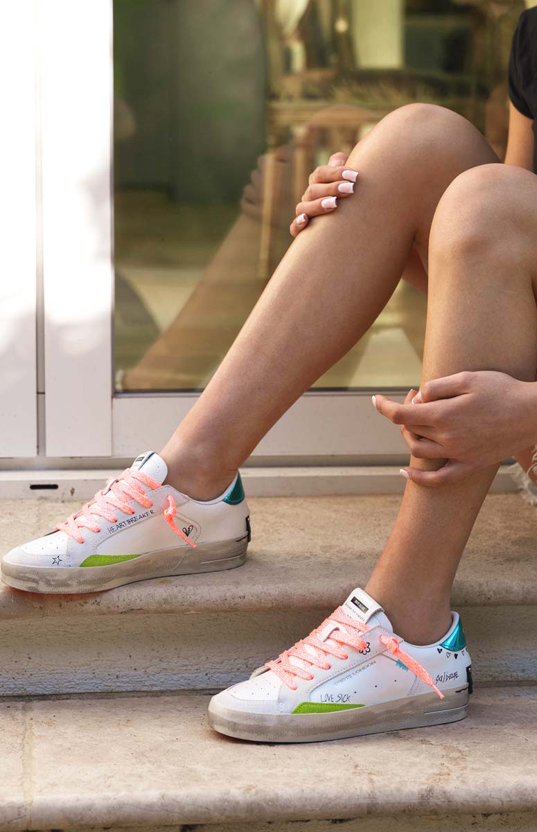 Les baskets femme de la marque Crime London s’imposent comme un incontournable du vestiaire urbain. Ce modèle blanc rehaussé de détails corail et vert fluo incarne parfaitement l’esprit street chic de la marque italienne. Pensées pour la saison estivale, ces sneakers femme allient style, confort et finitions premium pour accompagner toutes vos tenues du quotidien.