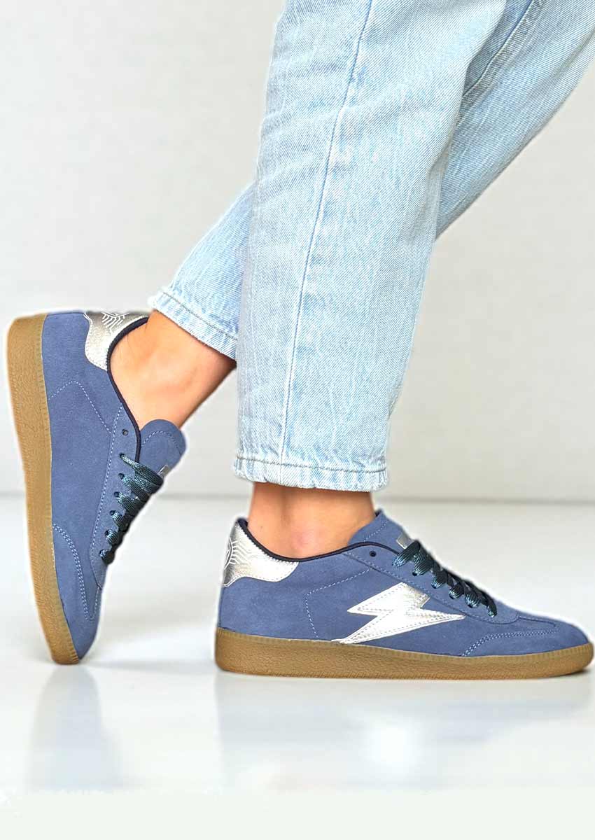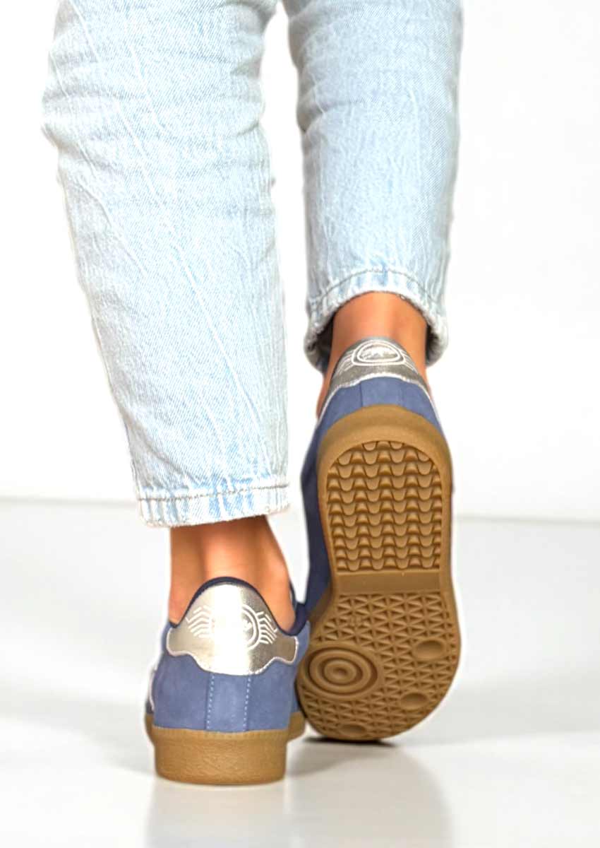 Une basket polyvalente, indispensable dans un dressing 2026, le bleu suédé associé aux notes argentées permet des looks : casual chic, sportwear élégant, urbain moderne et féminin.