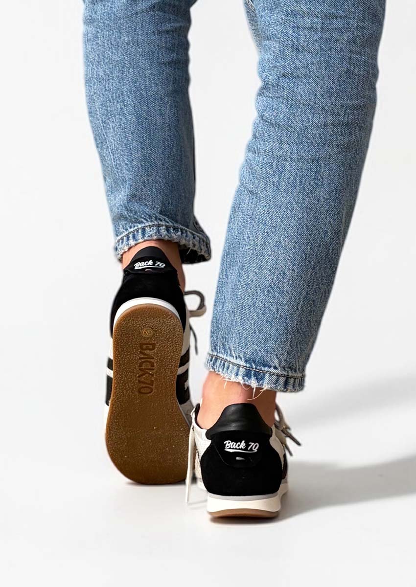 Les Baskets femme Back 70 Rocket White / Stone – sneakers blanches, noires, effet python séduisent par leur allure rétro et leur détail mode très actuel. Cette basket femme blanche originale associe une base claire lumineuse, des empiècements noirs contrastants et un élégant imprimé python sur l’avant. Avec sa silhouette basse, sa semelle gomme de 2 cm et son style facile à porter, c’est la paire idéale pour les femmes qui recherchent une basket basse femme tendance au quotidien.