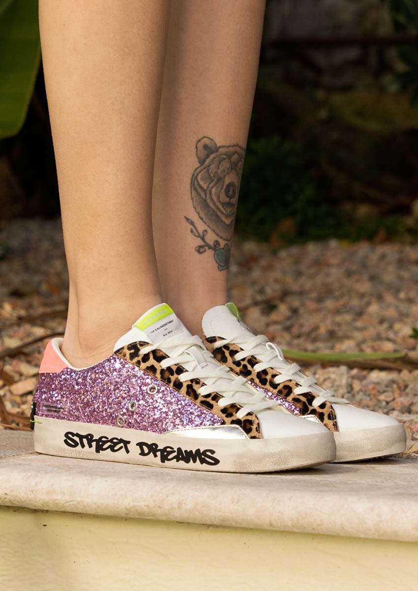 Les détails pailletés et léopard apportent une touche de fantaisie maîtrisée, idéale pour dynamiser une silhouette sans en faire trop.