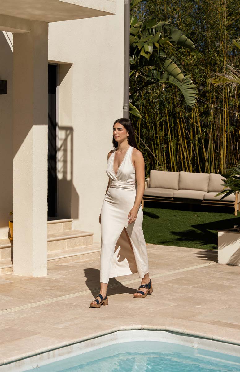 - ✓ Robe blanche longue fluide pour un look piscine élégant
