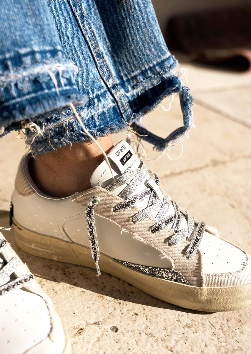 Conçues en cuir de qualité, avec des détails pailletés, des semelles à effet vintage et des silhouettes modernes, les baskets Crime London s’imposent comme un incontournable de la mode féminine.